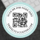 Autocollants ronds avec votre code QR et texte personnalisé dans une police serif élégante. Autour est un bleu aqua clair, double bordure. Modifiez les polices et les couleurs, déplacez et redimensionnez les éléments à l'aide de l'outil de conception. Suivez-nous sur Facebook : @businessstationery pour plus de produits, nouvelles, ventes et plus encore.