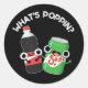 Sticker Rond Quel est Poppin Funny Soda Pun Pop Dark BG