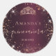 Sticker Rond Quinceanera Bourgogne rose or tiara nom script