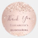 Pour une Quinceañera girly et glamour, fête du 15e anniversaire. Un arrière - plan métallique à l'aspect faux rose à la parties scintillant. Personnalisez et ajoutez un nom et un âge. Avec le texte : Merci écrit avec un script de style à la main moderne.
