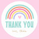 Dites "merci" à vos invités d'être venus à la fête avec ces stickers d'anniversaire élégants. Un joli design illustré d'un arc-en-ciel coloré sur un petit coeur rose et personnalisé avec les mots "Merci" et un nom personnalisé. Ces autocollants de célébration sont un excellent moyen de sceller des sacs-cadeaux pour les faveurs de la fête des enfants ou de fixer des rubans et des étiquettes à vos colis.