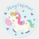Sticker Rond Rainbow Unicorn Noël Parties scintillant Aqua