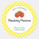 Une conserverie personnalisée ou un étiquette alimentaire art vintage fraise et des lettres de script rétro vert et noir sur un motif de cuisine à carreaux jaune et blanc, avec des rayures orange et vert. Ce modèle a trois lignes pour votre texte personnalisé, customisez-le pour ajouter ou supprimer des lignes, modifier des polices ou des couleurs arrière - plans !