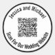Vous pouvez remplacer l'image d'affichage par votre code QR mariage. Il existe deux lignes de texte d'affichage noir que vous pouvez modifier pour afficher un message personnalisé. Ces élégants autocollants ont du texte noir dans un cercle blanc. L'autocollant a une bordure noire.