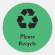 Sticker Rond Recycler avec symbole de recyclage sur vert