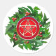 Sticker Rond Red Pentacle on Holly Wreath
