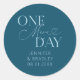 Dîner de répétition minimaliste mariage préférez l'autocollant avec le texte de typographie qui dit "un jour de plus". L'arrière - plan est turquoise.
