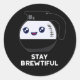 Sticker Rond Restez Brewtiful Funny Coffee Pot Pun Dark BG