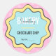 Retro Pâtisserie Chef Étiquette rond avec un design arrière - plan amusant inspiré des années 80 en rose pastel, bleu et jaune., parfait pour utiliser pour vos biscuits à sucre, cupcakes, gâteaux ou toute autre gâterie. Faites-vous plaisir avec les étiquettes de produits de boulangerie branchés pour votre entreprise.