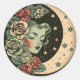 Sticker Rond Retro Art Déco Green Crescent Lady Lune Lune