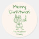 Sticker Rond Retro Drawn Green Santa Claus Merry Christmas