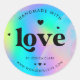 Sticker Rond Rétro Fait Main avec Amour Licorne Holographique