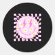 Sticker Rond Retro Happy Smile Face Checkered Pattern Nk Daisy