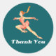 Sticker Rond Retro Image Figure Patinage En Merci Rosé