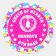 Sticker Rond Retro Neon Reine Des Coeurs Anniversaire