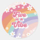 Sticker Rond Retro Rainbow Five est un Vibe 5e anniversaire