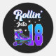 Sticker Rond Rollin Into 18 Roller Skating Theme Anniversaire 1