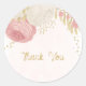 Sticker Rond Romantique rose & fleurs blanches or mariage