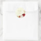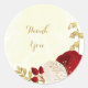 Sticker Rond Romantique rouge foncé & fleurs blanches or mariag