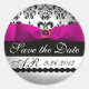 Sticker Rond ROSE BLANC DAMASK RIBBON MONOGRAM Violet Fuchsia