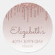 Sticker Rond Rose Parties scintillant or Drip 40e anniversaire