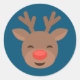 Sticker Rond Roudolf Reindeer de Noël en bleu