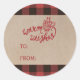 Sticker Rond Rouge Buffalo Plaid Warm Wains Noël Nom