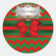 Sticker Rond Rouge moderne Chevron vert Zig-Zag Ribbon Noël
