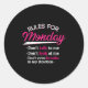Sticker Rond Rules For Monday Dont Talkt To Me Funny Tee