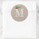 Sticker Rond Rustic Kraft Christmas Holly Monogram Initial