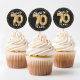 Des autocollants élégants de soixante-dixième anniversaire avec un arrière - plan noir élégant qui peut être changé à n'importe quelle couleur, parties scintillant brillante or, et le dicton "encourage à 70 ans" en utilisant soixante-dix ballons d'hélium or.