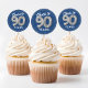 Élégants autocollants de quatre-vingt-dixième anniversaire avec un arrière - plan bleu branché qui peut être changé à n'importe quelle couleur, parties scintillant brillante argent, et le dicton "encourage à 90 ans" en utilisant quatre-vingt-dix ballons d'hélium argent.