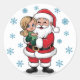 Sticker Rond Santa Clause accrocher une fille avec des flocons
