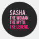 Sticker Rond Sasha The Woman The Myth The Legend Funny Valentin
