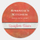 Un autocollant à sauce spaghetti peut être customisé pour lire le texte que vous voulez, comme la sauce tomate ou autre. L'arrière - plan est un style artistique à l'abstraite rouge, orange et marron. Texture en mosaïque et morceaux peints pour lui donner une sensation de grunge rustique patinée. Persionaliser avec votre nom, texte dit<name's>cuisine (faite avec amour).