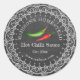 Étiquettes de conserverie faits maison, avec des piments verts et rouges à l'aquarelle posés sur un arrière - plan de tableau noir, pour cette ambiance de ferme. Bordée d'une dentelle blanche, elle donne un look campagnard chic.
