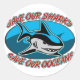 Menacer requin à l'air attrape votre attention dans ce Save our Sharks, Save our Oceans design! Requin avec arrière - plan ovale et texte bleu et bleu ! Grand message et parfait pour les amateurs de requins et d'océan !
