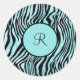 Sticker Rond Sceau d'enveloppe noir turquoise monogramme Zebra
