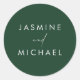 Scellez vos enveloppes mariages avec ces enveloppes simples et élégantes ! Le design présente vos noms en lettres blanches modernes complétées par un script manuscrit avec un arrière - plan vert de forêt. Ces stickers de mariage vert chic sont parfaits pour sceller les enveloppes, ajouter aux faveurs de mariage, et plus encore!