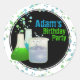 Béchers, flacons et beaucoup de bulles est une formule pour s'amuser sur cet autocollant coloré d'anniversaire de l'expérience de laboratoire scientifique. Essayez avec le texte comme préféré.
