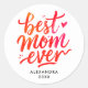 Doté d'un joli script de pinceau rouge chic avec "Best Mom Ever" contre un arrière - plan blanc immaculé, il se distingue sur la cour tout en gardant une ambiance amusante et moderne. Sous le titre, une typographie blanche propre et personnalisable vous permet d’ajouter un détail, ce qui en fait un ornement parfait pour la fête des mères, les anniversaires ou toute occasion. Célébrez la mère ultime avec cet autocollant élégant "Best Mom Ever".