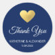 Sticker Rond Script moderne Gold Heart Marine Blue Mariage Seal