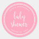 Sticker Rond Script rose et Baby shower en bandes blanches