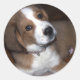 Buddy, un chien secourt, pose comme s'il implorait la caméra de l'aimer. Super chiot et maintenant heureux secouru, cette photo couleur pleine peut être customisée ou laissée telle quelle.