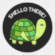 Sticker Rond Shello There Funny Tortoise Pun Dark BG