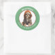Une image d'un adorable petit Chih Tzu Dog portant son manteau d'hiver et son casquette est au centre de ce mignon sticker Holiday. L'image est encadrée dans une bordure circulaire verte qui contient votre texte personnalisé en blanc. Parfait pour les cartes de Noël, la correspondance et les forfaits cadeaux.