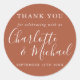 Symbole de signature en terre cuite pour mariage merci, autocollant rond classique avec des noms de style signature. Personnalisez avec vos détails de remerciement spéciaux en typographie blanche chic. Conçu par Thisisnotme©