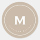 Un autocollant simple en papier à lettres avec médaillon monogramme classique montré avec initiale monogramme et nom dans une police moderne sur un arrière - plan beige. Vous pouvez customiser en utilisant les champs fournis. Idéal pour l'envoi, l'étiquetage ou la décoration.