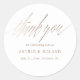 Cet élégant autocollant de faveur de mariage présente un faux Merci métallique chatoyant sur un arrière - plan blanc immaculé, ajoutant une touche élégante et personnelle à vos faveurs de mariage. Customisez avec vos noms et votre date de mariage pour créer un souvenir unique pour vos invités. Le design simple et sophistiqué s'inscrit parfaitement dans un thème mariage, ce qui en fait une belle touche de finition à votre journée spéciale.