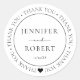 Un autocollant de remerciement en mariage noir et blanc peut être personnalisé avec les noms de la mariée et du marié et la date du mariage.